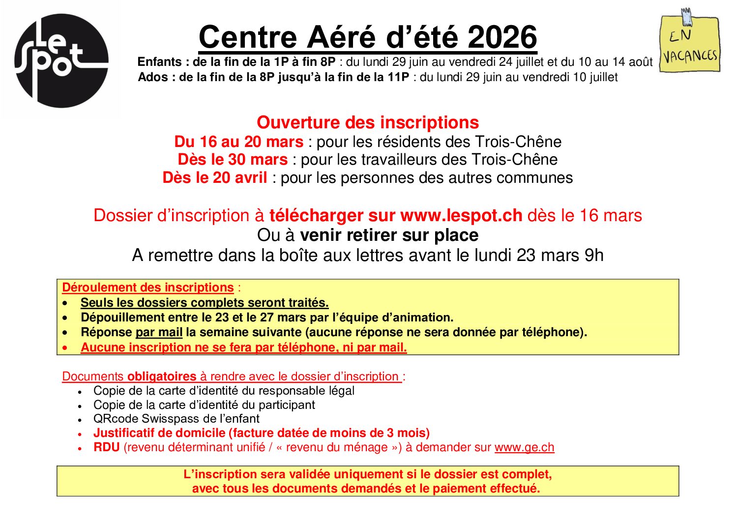 Pour enfants de la fin de la 1P à la 8P habitants les communes des 3 Chêne inscriptions réservées du 16 mars au 23 mars.